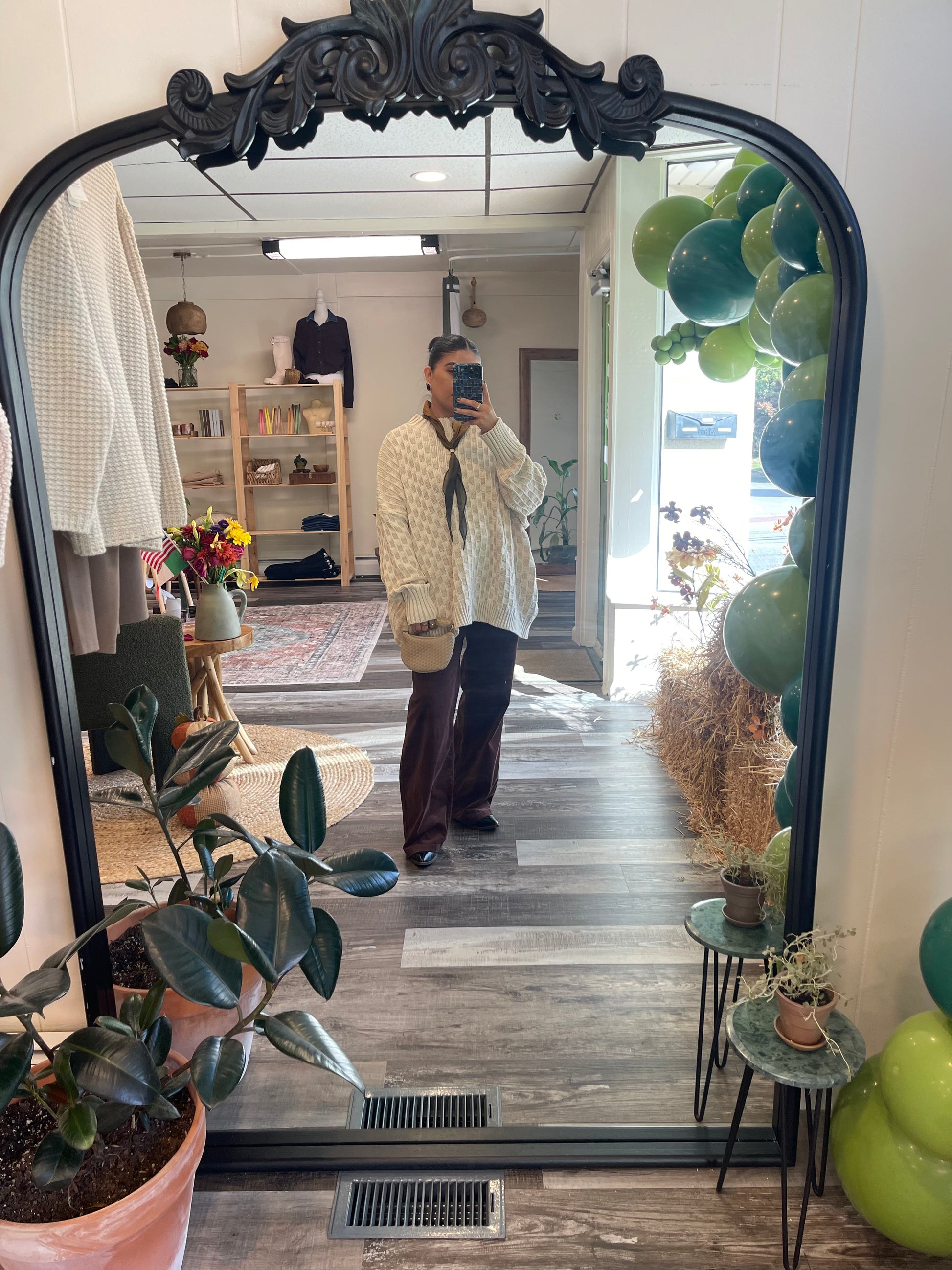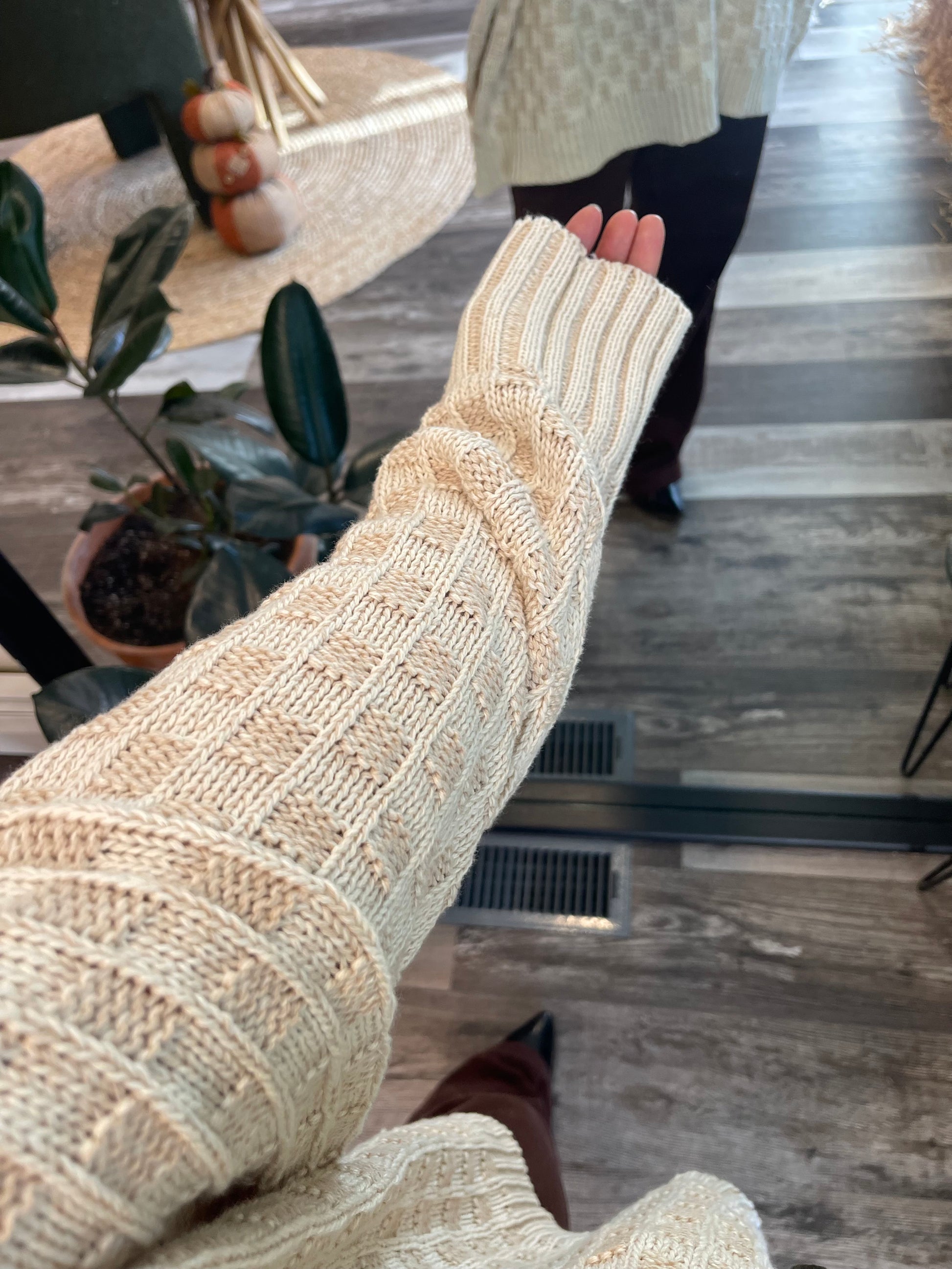 Midweight ribbed knit fabric with an oversized slouchy fit.