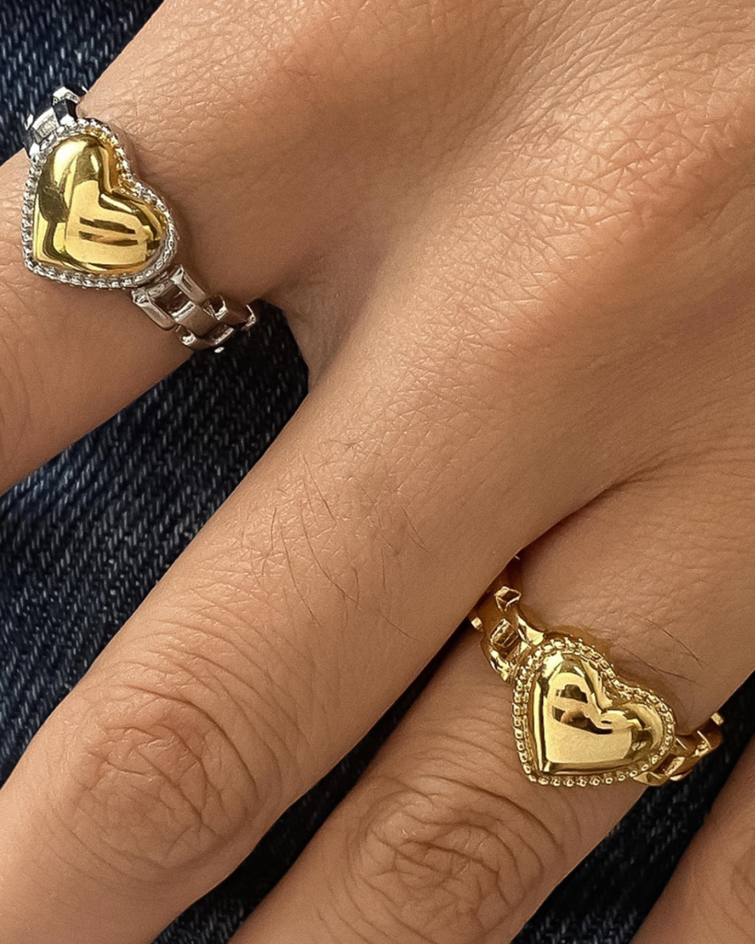 18K Gold Non-Tarnish Heart Watchband Ring 18K Gold Plating Stainless Steel