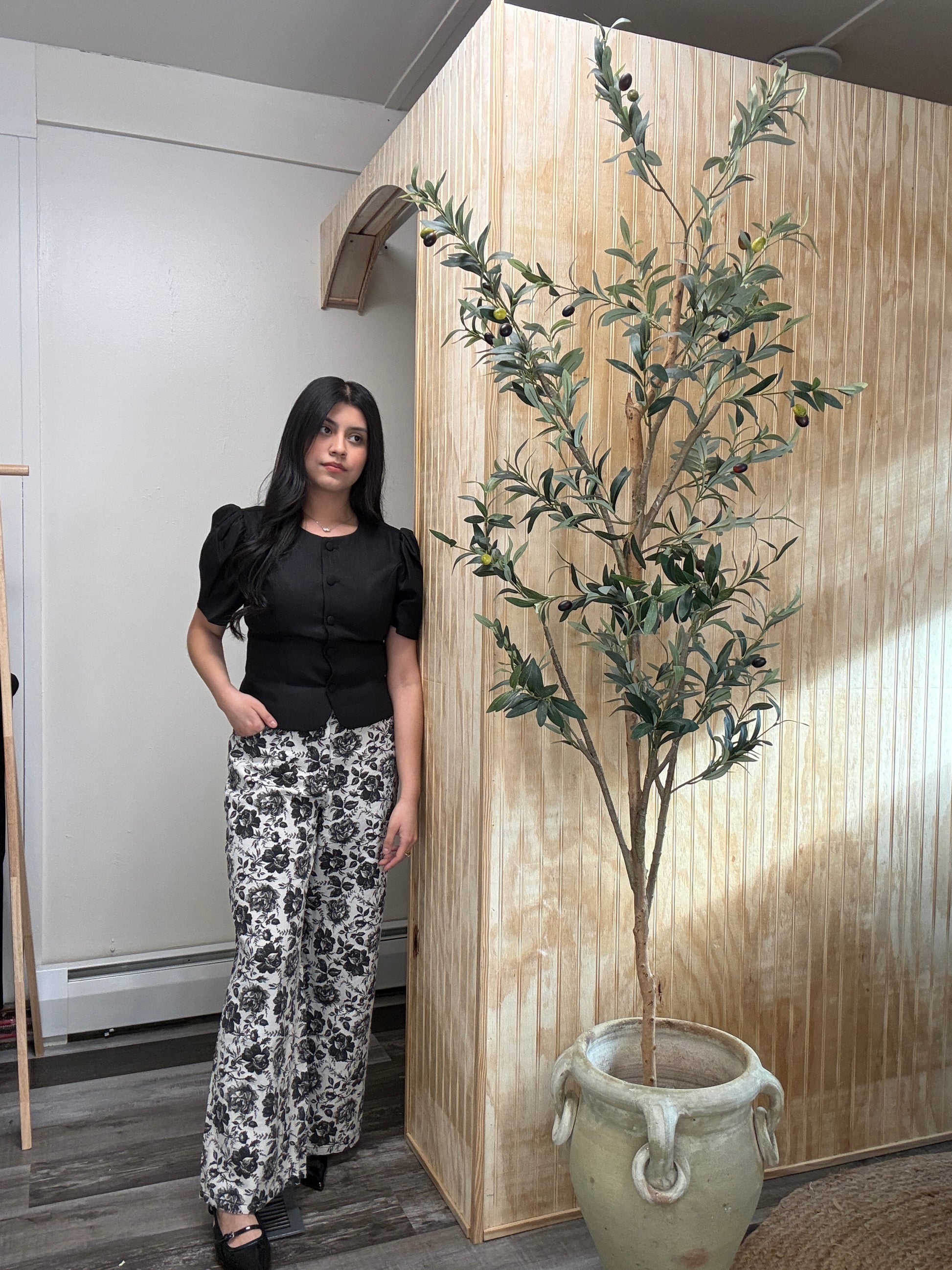 Pair with a fitted knit top or tucked-in blouse for a chic everyday look, or style with the matching floral shirt for a coordinated statement outfit.